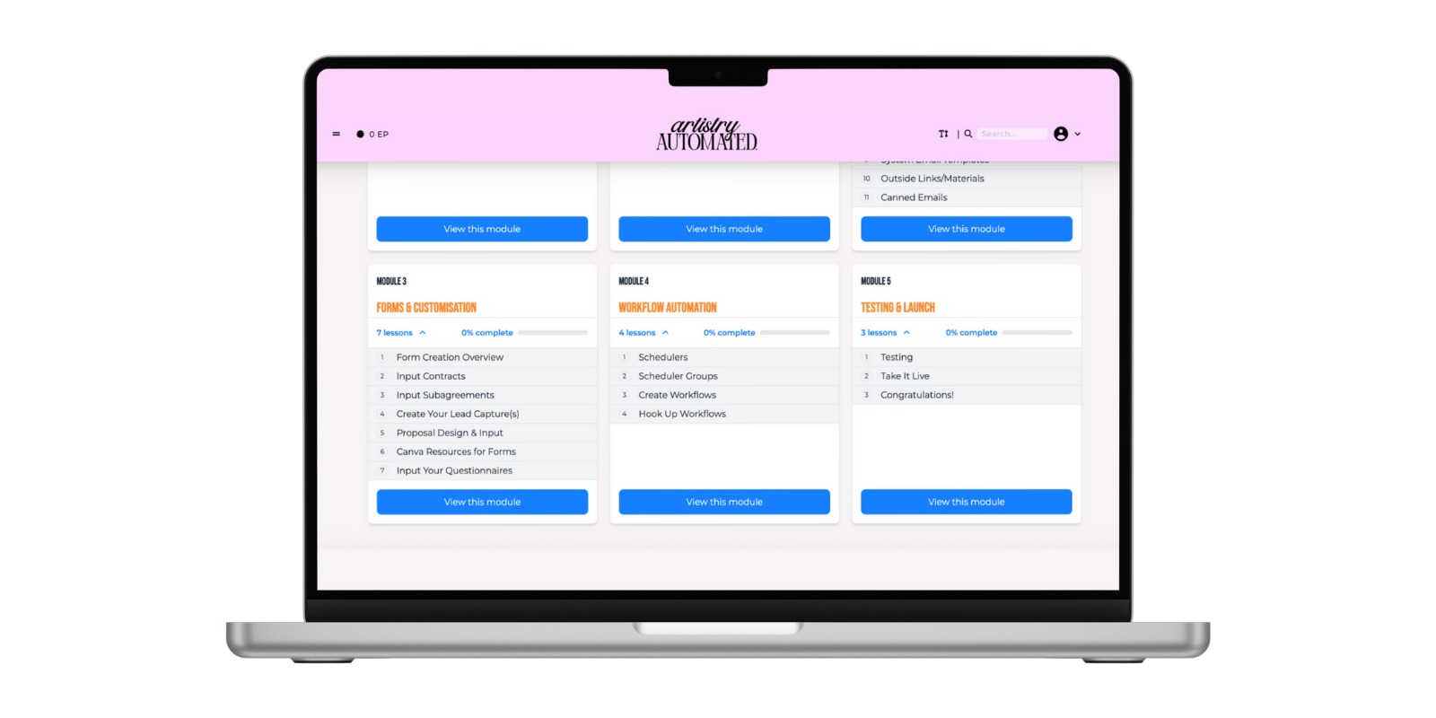 We’ll kick things off by setting up your tools and getting everything organised. This module is all about getting your business prepped for automation so that you can start strong. You’ll set up your Dubsado account, design your email signature, and complete your onboarding worksheet, all with clear, simple steps.